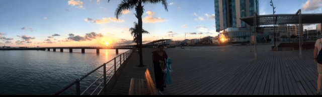 Dimos un paseíto por la marina en busca del sitio de alquiler de bicis y no lo encontramos (luego comprobaríamos en el mapa que nos habíamos equivocado de marina), así que le dejé un mensaje de voz a Juan, de bicis Draisiana, preguntando si era posible reservar dos bicis para una semana desde el lunes. Me contestó por WhatsApp que sin problema, y ya resuelto ese tema solo nos quedó seguir disfrutando con calma de la tarde. Tuvimos una magnífica puesta de sol y una cena algo decepcionante de la que solo puedo destacar que el agua se me antojó bálsamo de Fierabrás, de puro deshidratada que estaba.