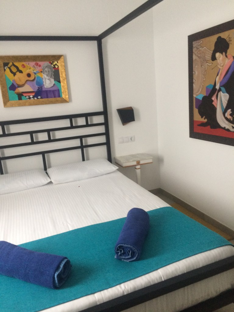 Por el mismo precio que la miserable habitación de Tinajo estábamos en una habitación de lujo, en un “hotelillo”, La Casona, regentado por una gallega muy salada que nos aconsejó muy sabiamente aprovechar los desayunos y las cenas del restaurante, como efectivamente hicimos los dos días que nos quedamos. Recomendamos encarecidamente este lugar porque nos trataron magníficamente y se cena muy bien.