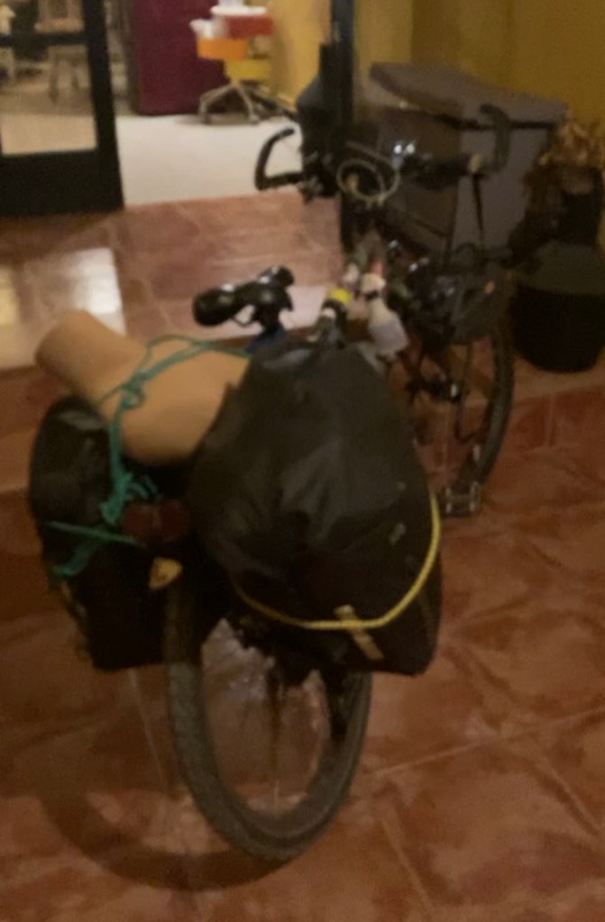 ¡Qué buenas vibraciones tras haber pasado la noche en la antigua disco! Tal y como le escribí a David en su guest book, dormí a pierna suelta sin que me perturbasen los fantasmas de danzantes borrachos y amoríos perdidos de discoteca. Luego me explicó Mila que el local llevaba 30 años sin su función original. Sin duda, todos los ciclistas que pasamos por allí dejamos nuestro rastro de sincera admiración y agradecimiento por poder pasar la noche en este lugar tan especial.
