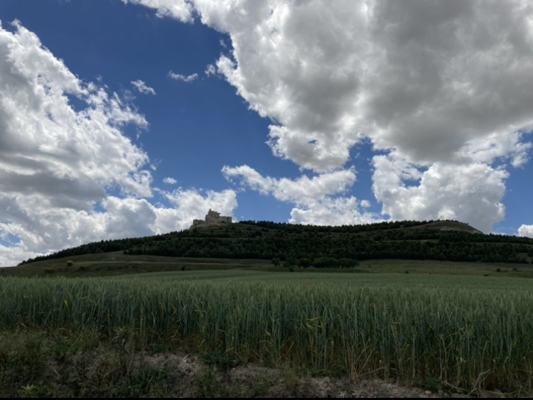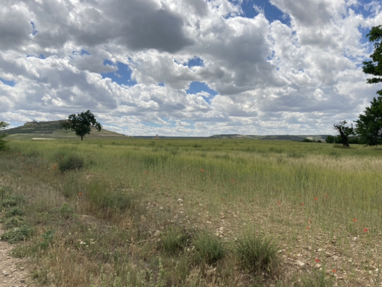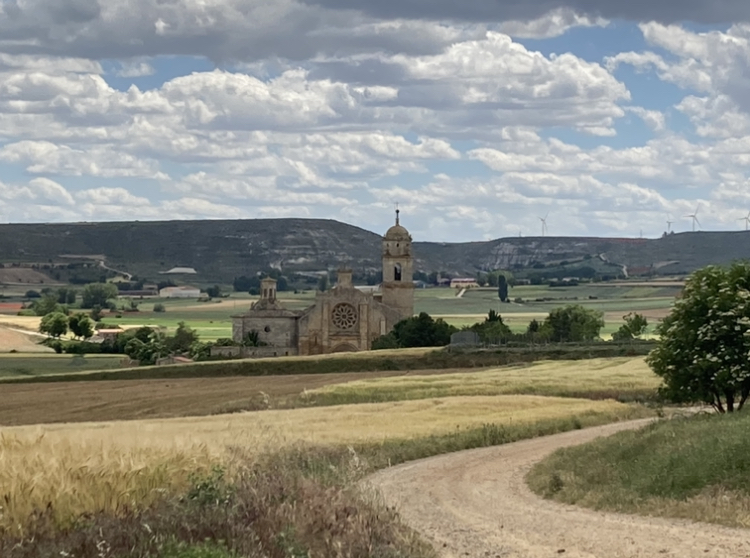 La salida de Astudillo fue por una carreterilla secundaria que imagino que es lo que mi amiga Laura denomina “parcelaria”, porque transcurre entre parcelas de cultivo. Fui rumiando la conversación que había mantenido con Milagros durante el desayuno y me di cuenta de que se me había olvidado hacernos una foto. Qué mujer más extraordinaria: “Ojalá volvamos a vernos”, me iba diciendo, con esa mezcla de pena y esperanza que sentimos al despedirnos, sin garantía, los viajeros.