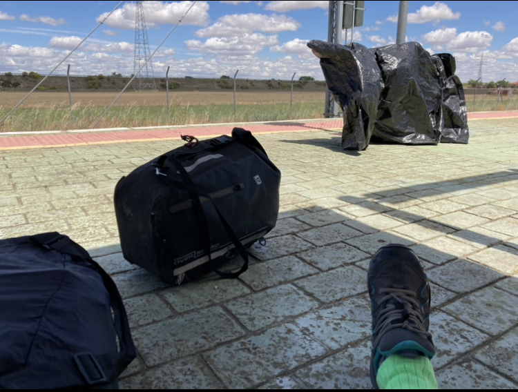 En un acto desesperado por llegar a la hora y al lugar pactados, varié la ruta para intentar atajar y Google me mandó entre campos de trigo por el Camino de la Bernardina, un sendero de tierra y cantos rodados en medio de un paraje desolado y desierto, no exento de belleza -pero yo en esos momentos estaba agotada y muerta de calor. Me cagué, literalmente, en todo: me dio una pájara, insolación, ataque de ansiedad, o qué sé yo, en ese mismo momento, y mi sistema entero me pidió evacuar todo lo que llevaba dentro. Vomité y descomí entre los trigos, alejada de la vista de todos, y entonces me sentí infinítamente mejor. Bebí, comí algo de la fruta que llevaba conmigo y entonces ya sí, ligera como el viento y con energía renovada retomé el camino de tierra y luego, ya en la carretera P-901, me deslicé rauda hasta Palencia y esta guiri con sombrero logró llegar in extremis a la estación a conocer a David.