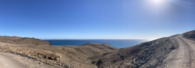 Pasamos por lugares curiosos, como el Barranco del Mal Nombre, y vimos de lejos alguna playita paradisíaca, demasiado cuesta abajo como para plantearse ir y venir. Pasamos también de largo Costa Calma, que de nuevo parecía un hervidero turístico (evítese a toda Costa) y, tras una subida demencial, llegamos finalmente a Tarajalejo.