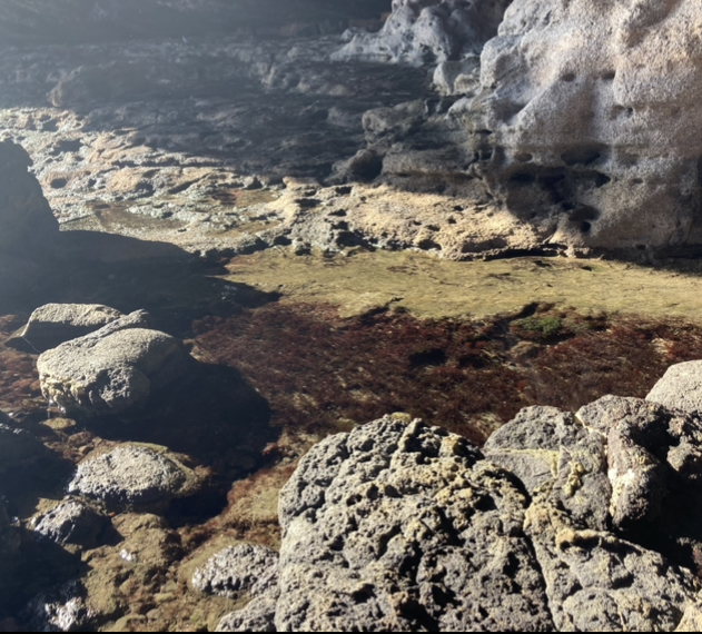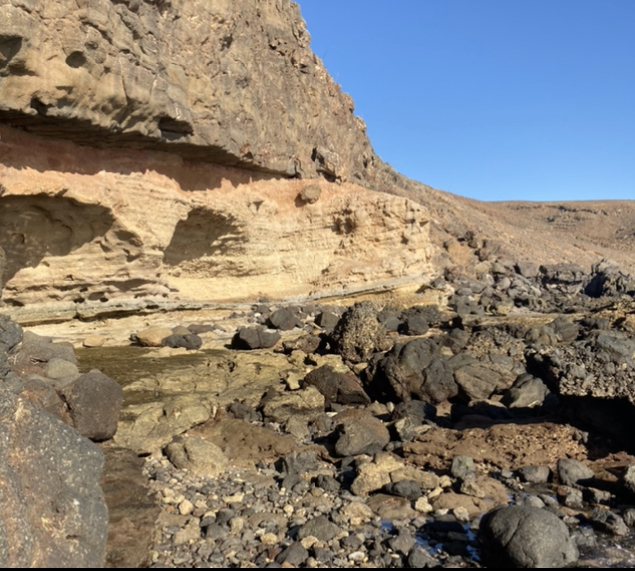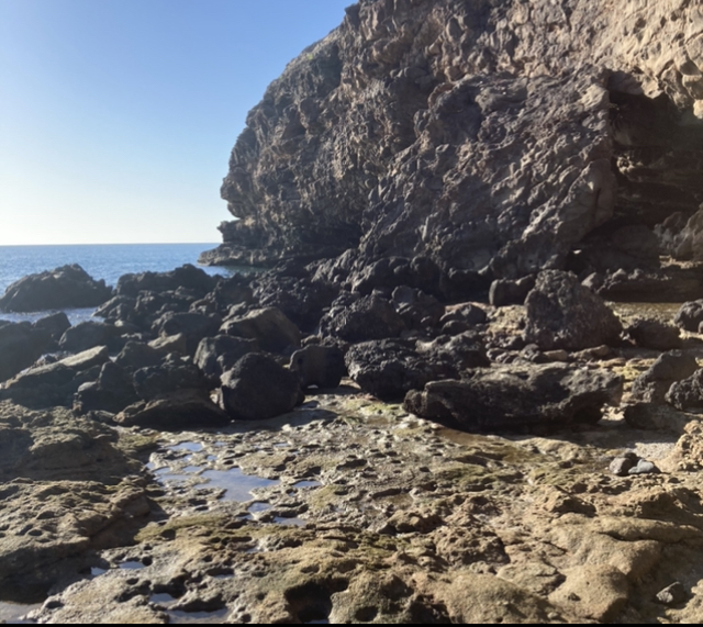 Ya refrescada, caminé hasta la cuevita, que efectivamente se veía mejor con la marea baja. Era un simple recoveco en la ladera del barranco, pero ofrecía unas texturas impresionantes.