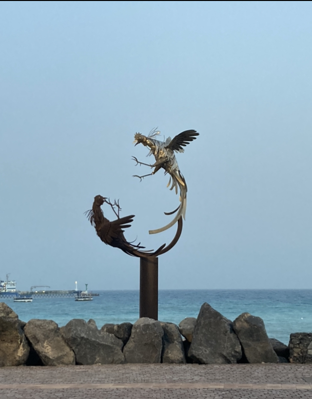 Pak me esperaba, muerto de calor y de aburrimiento, a la sombra de la estatua del barco, y rodamos por la avenidita hasta el apartamento, dispuestos a vaguear el resto del día (bueno, yo de hecho asistí a una clase en línea de mi curso de mediación, pero suena muy poco aventurero).