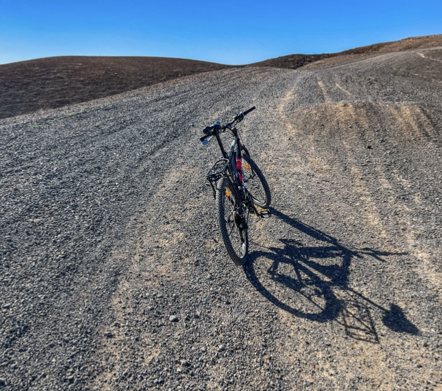 Volvimos por el mismo camino de tierra, con muchísimo calor y sin viento que se apiadase de nosotros. Las cuestas abajo se me hicieron muy peligrosas tras haber bebido dos cervezas, así que caminé con mucho tiento, arrastrando a Anacleta por las laderas de las colinas. Si mi pobre bici hablara del maltrato a que la someto…