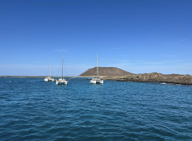 Cuando llegamos al puertito, devoramos nuestros sangüiches mientras contemplábamos el amarre del Majorero. Sí, definitivamente había sido muy, muy justo contratar los trayectos de las 11:15 y las 14:20, porque tres horas (dos horas y media netas, en realidad) se quedan cortas para disfrutar del islote.